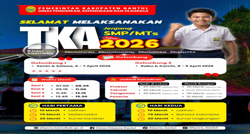 SMP Muhammadiyah Kasihan menyatakan kesiapannya dalam menghadapi Tes Kemampuan Akademik (TKA) dan Tes Kemampuan Akademik Daerah (TKAD) tahun 2026 sebagai bagian dari upaya peningkatan mutu pendidikan siswa kelas IX. Melalui bimbingan intensif dan berbagai latihan simulasi, para siswa dipersiapkan untuk menguasai materi inti seperti Bahasa Indonesia, Matematika, Bahasa Inggris, dan Ilmu Pengetahuan Alam (IPA) yang menjadi standar penilaian objektif dalam tes tersebut. Pihak sekolah, di bawah kepemimpinan yang tanggap terhadap perkembangan teknologi, memastikan seluruh sarana pendukung dan mental siswa telah siap untuk menempuh ujian ini guna memperoleh hasil terbaik sebagai bekal melanjutkan pendidikan ke jenjang berikutnya.